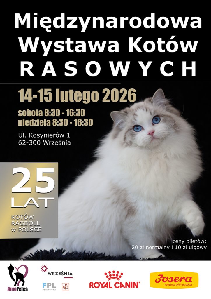 Poznański Klub Kotów Rasowych AmoFeles wspólnie z Burmistrzem Miasta Września serdecznie zapraszają na 5 i 6 Międzynarodową Wystawę Kotów Rasowych we Wrześni.